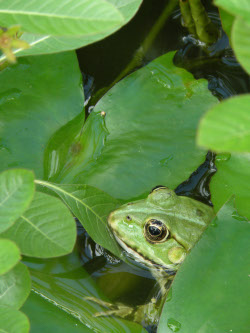 Der Frosch weiß guten Rat: mit einem Halm vom Schilfe